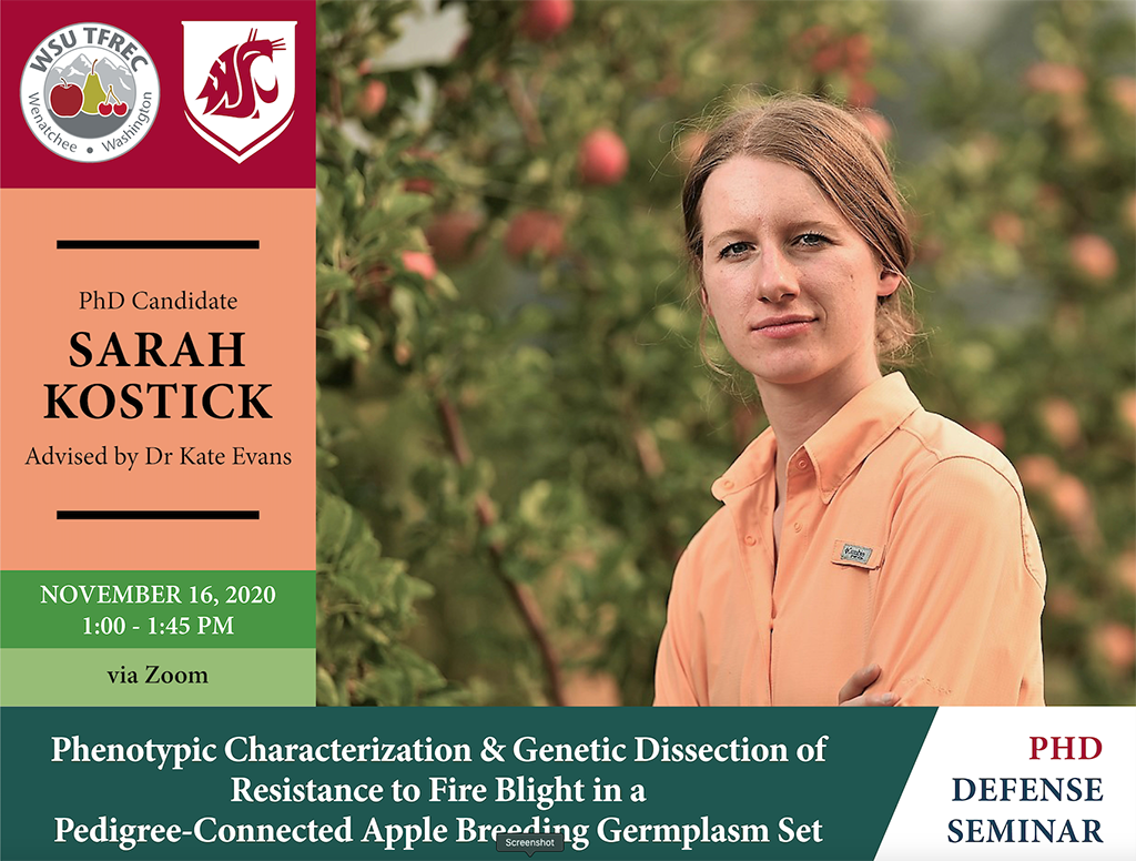 Sarah Kostic from Kate Evens’ Tree Fruit Breeding program will be defending her PhD research entitled: